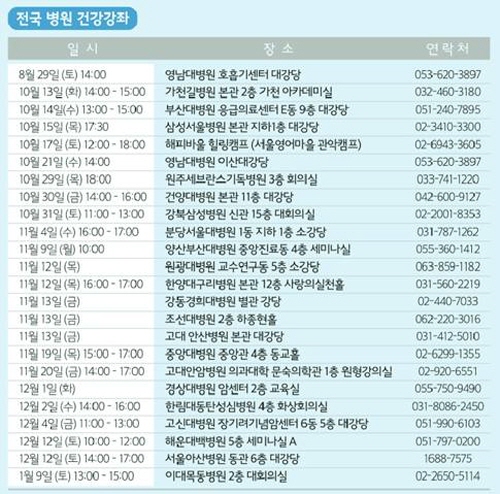 건강강좌는 전국 23개 병원에서 무료로 진행되며, 염증성 장질환 환자뿐 아니라 환자의 가족이나 지인 등 질환에 관심있는 사람이라면 누구나 참여 가능하다.