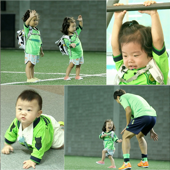 선착순 달리기 대결에서 ‘우등생’ 설아를 제쳤고, 아직 걸음마도 못 뗀 대박은 역시 축구선수 이동국 아들임을 입증하듯 축구공에 호기심을 드러내 눈길을 끌었습니다.