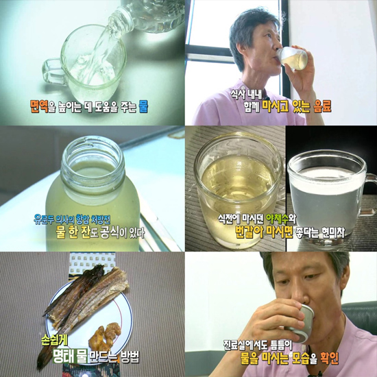 이날 방송에 출연한 유문두(55) 한의사는 “몸에 좋다고 해서 무작정 물을 많이 마시면 안 된다.”고 말해 호기심을 자아냈는데, 이는 간부전이 있거나 간이 안 좋을 경우, 부신피질 호르몬에 문제가 있는 사람들은 물을 자신에게 몸 상태에 맞게끔 적당히 마셔야 한다고 전했습니다.