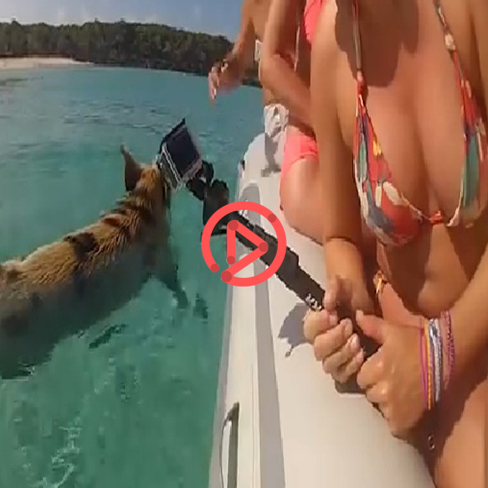 여기는 파란 하늘과 하얀 백사장, 그리고 크리스탈 같은 바다로 유명한 바하마 해변으로, 이곳에선 사랑스럽고 뚱뚱한, 놀기 좋아하는 돼지들이 투어객들로부터 유명세를 치르고 있습니다. [출처=유튜브]