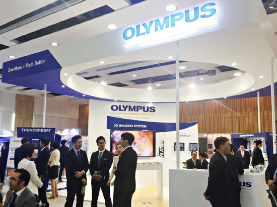 올림푸스한국은 전시장 3층에 체험부스를 마련, 세계 유일하게 연성 복강경 카메라로 3차원 입체영상을 구현하는 ‘3D 복강경 시스템’, 세계 최초이자 유일한 듀얼 에너지 디바이스 ‘썬더비트’ 등 주요 외과 제품을 전시하고 직접 체험 할 수 있도록 했다.