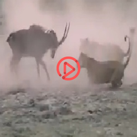 그래도 끝까지 긴 뿔로 사자에게 저항해보는 영양의 투지가 높습니다. [출처=유튜브]