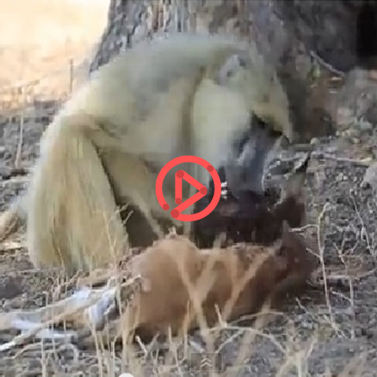 육류를 먹는 원숭이, 조금은 익숙하지 않은 시선이네요. [출처=유튜브]