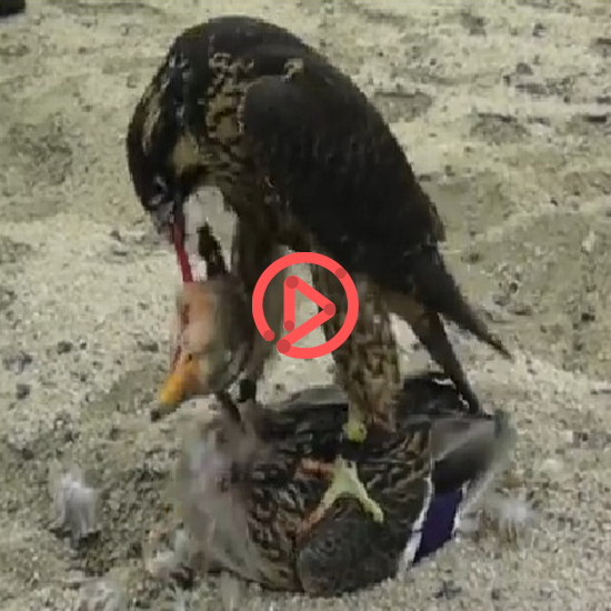 땅으로 착지한 매는 오리를 날카로운 발톱으로 움켜쥐고는 목 주위의 깃털을 뽑기 시작, 고깃덩이와 신선한 피를 맛보는데...