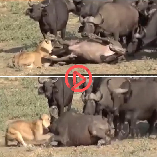 암사자에게 제압당한 버팔로, 뒤집힌 채로 연신 살려달라는 괴로운 울음이 끊이질 않습니다.