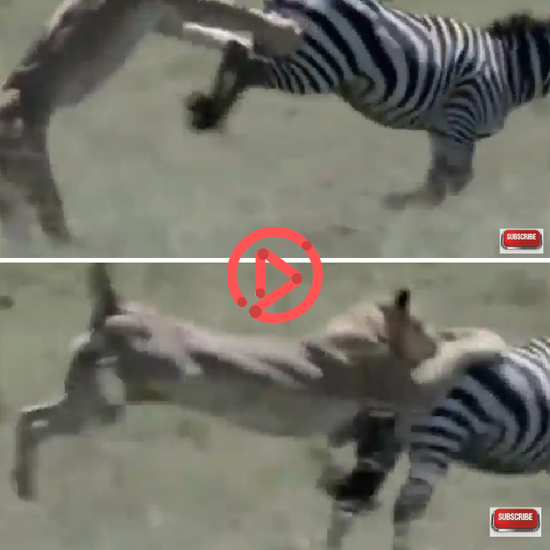 이때 얼룩말의 회심의 뒷발질 한 방으로 동물의 왕 사자, 절뚝거리는 신세가 돼 제대로 체면 구겨졌네요. [출처=유튜브]