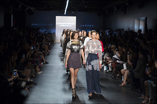"[쿠키뉴스=박주호 기자] 문화체육관광부와 한국콘텐츠진흥원(KOCCA)은 ‘뉴욕패션위크 S/S 2016’ 기간인 지난 14일 미국 뉴욕 모니한 스테이션(Skylight at Moynihan Station)에서 개최한 ‘컨셉코리아 여성복 S/S 2016’ 런웨이에서 우리나라 디자이너들의 독특하고 개성 넘치는 컬렉션을 선보였다고 밝혔다.