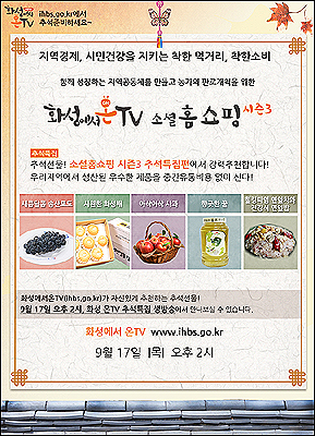 한편 오는 17일 오후 2시에 방송되는 ‘화성 on TV’ 소셜홈쇼핑은 화성시 인터넷방송국(www.ihbs.go.kr)을 통해 온라인과 모바일로 시청할 수 있다. epi0212@kmib.co.kr