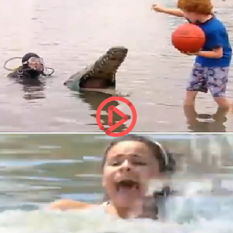 아무런 의심 없이 볼을 건지러 가는 피서객들은 느닷없는 악어(?)의 출몰에 혼비백산하는데... [출처=유튜브]
