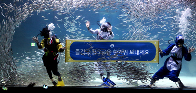 [쿠키뉴스=김진환 기자] 코엑스아쿠아리움이 풍성한 한가위를 맞아 가야금을 들으며 비단잉어가 가득한 한국의 정원을 걷고, 정어리 바다에 빠진 효녀 심청을 만날 수 있는 특별공연을 마련했다.