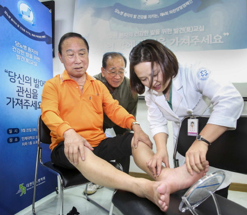 [쿠키뉴스=김단비 기자] 당뇨 환자의 상당수가 당뇨로 인한 발 합병증을 경험하고 있다. 이에 대한당뇨병학회는 당뇨병 환자에게 발생하기 쉬운 심각한 합병증을 조기에 발견해 중증질환으로 이환되는 것을 막는 건강강좌, '발견교실'을 22일 개최했다.