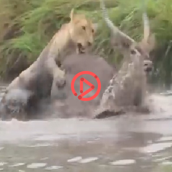워터벅은 한참을 몸부림치며 빠져나오려고 애를 쓰지만, 암사자는 버티기로 일관하는데요.