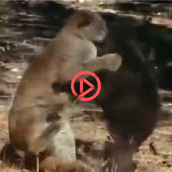 안 되겠다 싶었는지 먼저 선제공격하는 흑곰, 퓨마와 서로 원투 펀치를 날리며 맞서 잘 싸우자 당황한 퓨마가 내뺍니다.