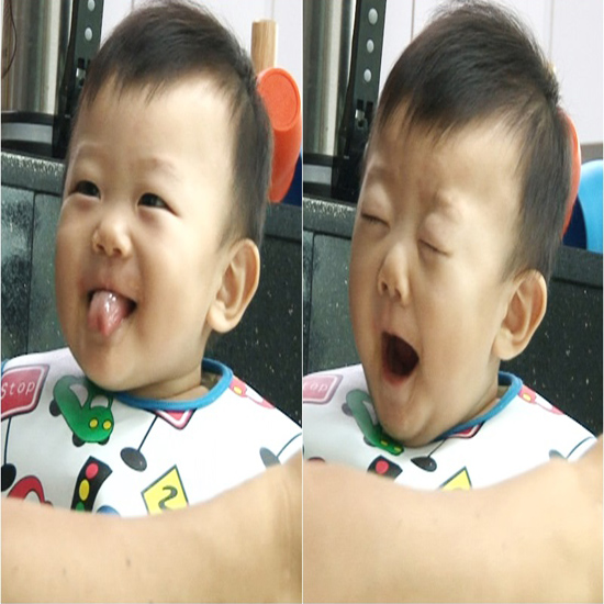 이유식을 먹고 난 후 만족의 표시로 깜찍 윙크를 선사하는가 하면 메롱까지 보여주며 보는 이들의 심장을 쿵쾅이게 했습니다.
