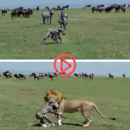 하지만 잠시 후, 불쑥 나타난 수사자가 새끼 얼룩말을 덮칩니다.