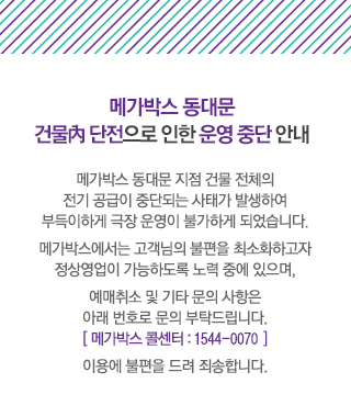 메가박스는 6일 홈페이지 공지사항을 통해 “메가박스 동대문 지점 건물 전체의 전기 공급이 중단되는 사태가 발생하여 부득이하게 극장 운영이 불가하게 됐다”라며 “고객의 불편을 최소화하고자 정상 영업이 가능하도록 노력 중에 있다”고 밝혔다.