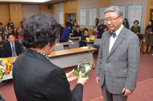 [쿠키뉴스=김단비 기자] 건양대병원 박창일 의료원장이 14일 오전 10시 대전시청 3층 세미나실에서 개최된 ‘제23회 대전광역시 장애인부모대회’에서 대전시장애인부모회(회장 오희순)로부터 감사패를 받았다.