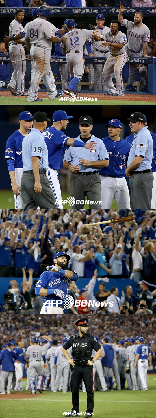 텍사스 레인저스와 토론토 블루제이스의 15일(한국시간) 아메리칸리그 디비전 시리즈 5차전은 막장, 그 자체였다.