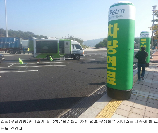 이날 김천휴게소와 한국석유관리원은 분석을 희망하는 고객의 차량에서 연료를 뽑아내 이동시험실에서 분석한 뒤 결과를 알려주며 가짜 연료에 대한 운전자들의 불안감을 해소해줬다.