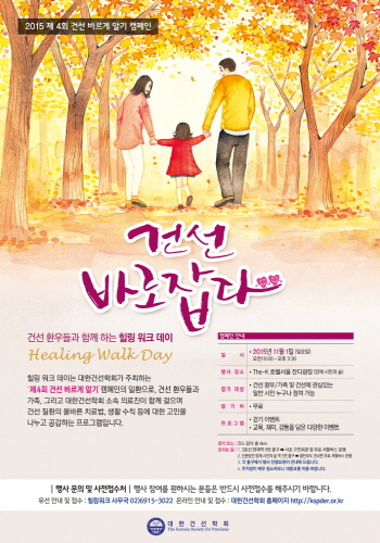 [쿠키뉴스=김단비 기자] 대한건선학회는 세계 건선의 날(10월 29일)을 맞아 다음달 1일(일요일, 오전 10시) The-K 호텔 서울 잔디광장에서 힐링 워크 데이를 개최한다.