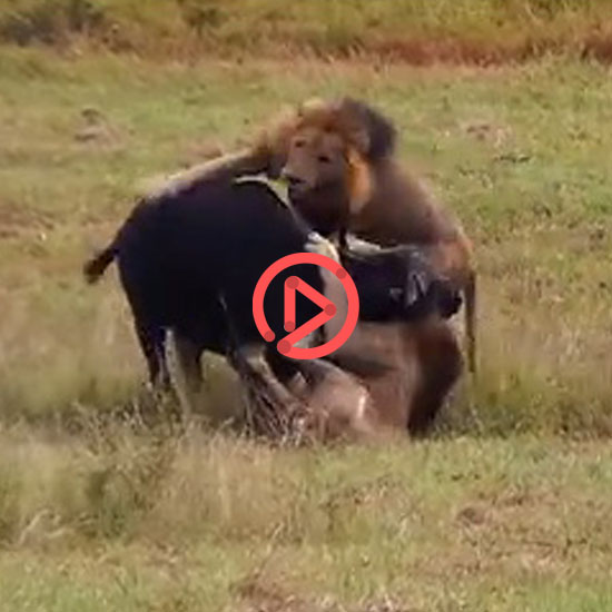 기회를 틈탄 숫사자들이 이내 어미 버팔로를 덮칩니다.
