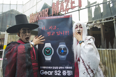 "[쿠키뉴스=김진환 기자] 에버랜드가 할로윈데이를 열흘 앞둔 21일 삼성전자와 ‘최고의 강심장’을 찾는 이색 마케팅을 펼쳤다.