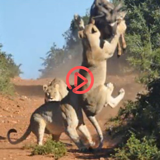 대기하던 사자들, 영양을 낚아채기 위해서 앞을 가로막고 뛰어오르지만, 속도가 붙은 영양의 기세를 꺾지 못하고 길을 내어주고 맙니다. [출처=유튜브]