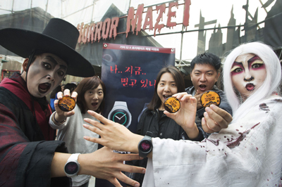 [쿠키뉴스=김진환 기자] 에버랜드가 할로윈데이를 열흘 앞둔 21일 삼성전자와 ‘최고의 강심장’을 찾는 이색 마케팅을 펼쳤다.