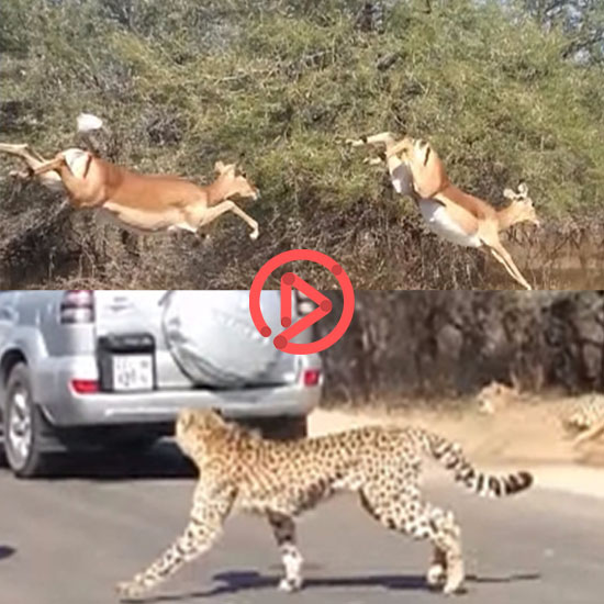 [쿠키뉴스=콘텐츠기획팀] 남아프리카 크루거 국립공원을 투어 중인 사파리 차량 사이로 임팔라 무리가 놀라운 점프 실력을 과시(?) 하며 쏜살같이 도망을 칩니다.