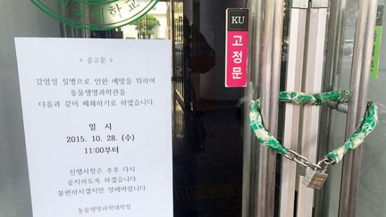폐렴 증상은 이 대학 면역유전학실험실과 동물영양학자원실험실을 포함한 3곳의 실험실에서 머물렀던 사람들에게서 집중적으로 나타났습니다. 학교측은 28일 새벽 건물 전체를 소독했고 같은날 오전 11시에는 일반적인 폐렴보다 전염 속도가 빠르다는 판단에 동물생명과학대 건물을 폐쇄했습니다.