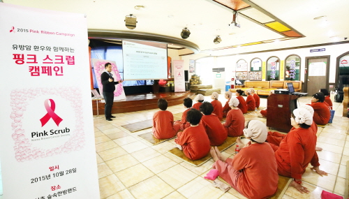 [쿠키뉴스=김단비 기자] 한국유방암학회가 유방암 환우와 함께하는 ‘2015 핑크 스크럽 캠페인’을 진행했다.