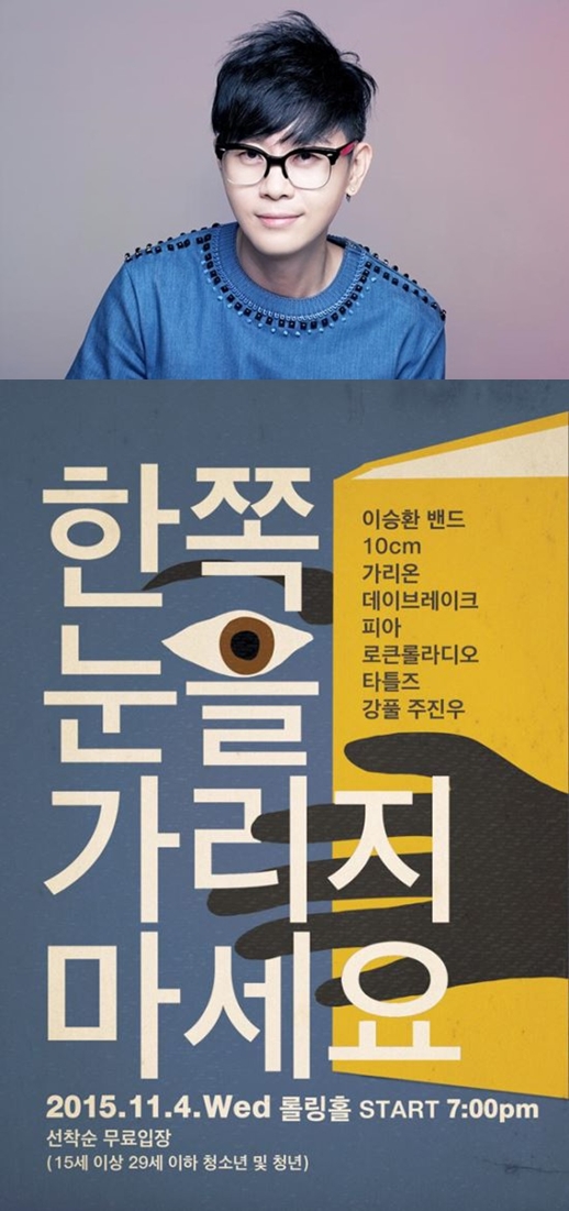 앞서 이승환은 역사 교과서 국정화 반대 콘서트를 4일 오후 7시 홍대 롤링홀에서 열 것이라고 밝혔다. 이승환은 “무엇보다 어른들의 부당함과 부조리에 거리에 나서 스스로 목소리를 내는 청년들을 응원하고 지지한다는 뜻에서 모두가 흔쾌히 참여하기로 한 공연”이라고 전했다.