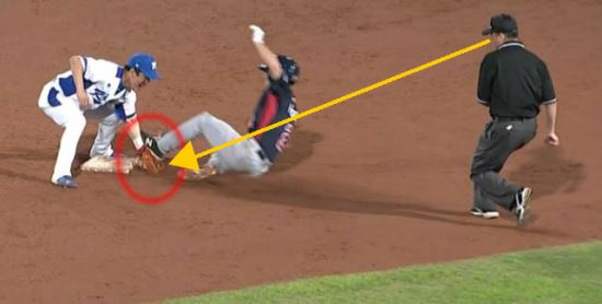 이어 미국의 1루 주자 프레이저는 2루 도루를 시도했고, 포수 강민호의 송구는 ‘자연태그’가 가능할 정도로 빠르고 정확했다. 송구를 받은 2루수 정근우는 여유 있게 글러브를 2루 베이스 앞에 댔고, 슬라이딩을 프레이저의 오른발은 정근우의 글러브를 밟아 누르고 들어오면서 아예 베이스에 닿지도 못했다.