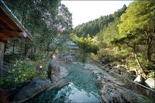 ‘미지근하다’라는 뜻의 일본어 ‘ぬるい(누루이)’에 온천이라는 뜻을 가진 ‘湯(유)’가 합쳐진 누루유온천으로 구마노가와 후루유 온천은 온천수가 뜨겁지 않기 때문에 장시간 입욕이 가능하다는 장점이 있다. 산 속에 위치한 온천마을이지만 사가역에서 차로 30분 정도면 이동할 수 있을 정도로 접근성이 좋아 사가현을 찾는 이들에게 사랑 받는 대표적인 온천이다.