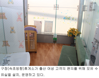 구정휴게소는 모유수유가 여성과 아기의 건강에 큰 도움이 되지만 모유 수유실 부족으로 불편을 겪는 점에 착안해 고객 맞춤형 서비스 일환으로 수유실을 설치, 운영하고 있다.