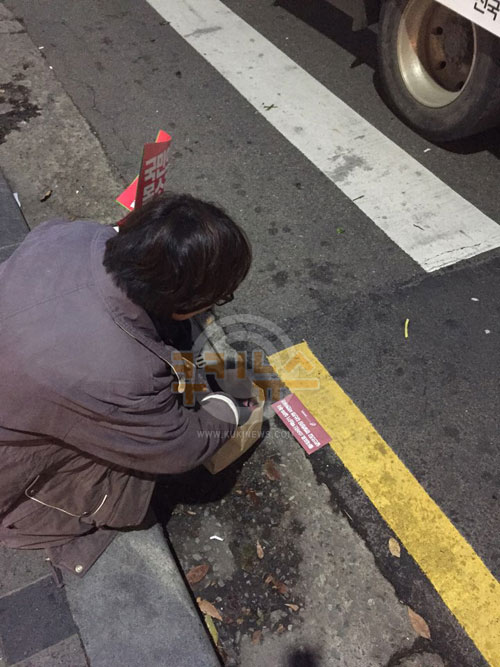"[쿠키뉴스= 민수미, 김현섭 기자] 5일 오후 서울광장에서 열린 ‘2차 민중총궐기’에서 한 시민이 자발적으로 쓰레기를 줍고 있다.