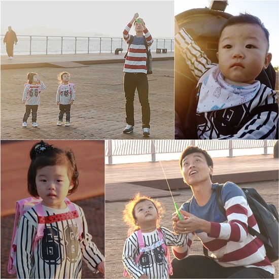 이에 설아-수아는 아빠의 연을 날리기 위해 공원을 이리 뛰고 저리 뛰며 동분서주해 이동국을 흐뭇하게 만들었고, 여기에 대박은 같이 뛸 수 없는 게 아쉬운 듯 시시각각 표정을 달리하며 한 없이 달리는 누나들을 응원해 시선을 모았습니다.