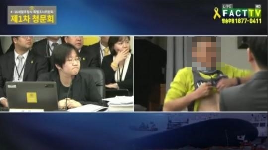 당시 청문회에선 목포해경 123정 승조원이 “구조정이 해류에 밀린 것 같다”는 답변을 해 방청석에서 야유가 쏟아진 상황이었다. 김씨는 “할 말이 있습니다. 위증입니다”라고 외치기도 했다.