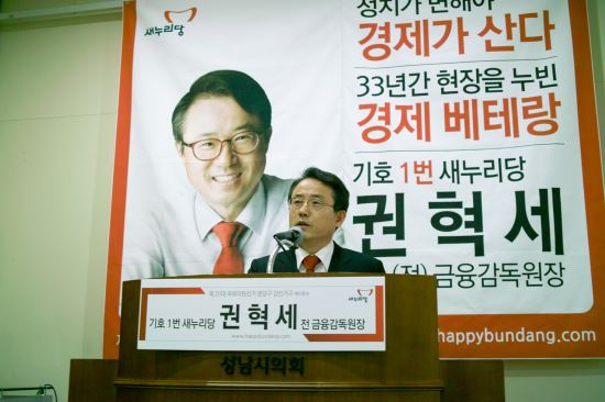 "[쿠키뉴스] 권혁세 전 금융감독원장은 15일 "내년 4월 치러지는 제 20대 국회의원 선거에 경기도 성남시 분당 갑지역의 새누리당 후보로 출마하겠다"고 공식 선언했다.