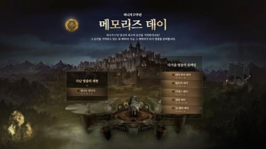 리니지 이용자들은 1월 6일까지 메모리즈 데이 프로모션에 참여할 수 있다. 세 가지 이벤트로 나뉘어 진행한다.
