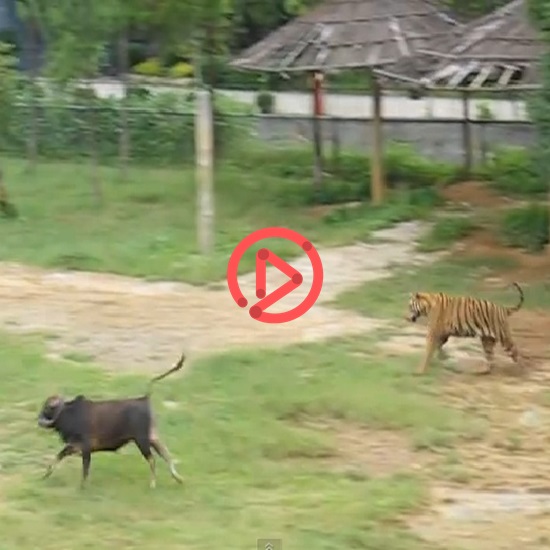 호랑이와 맞선 소, 정면승부로 내달려 호랑이에게 덤벼보는데... [출처=유튜브]