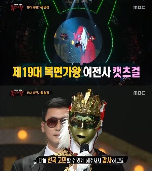 20일 방송된 ‘복면가왕’에선 19대 가왕 자리를 놓고 결승전이 펼쳐졌다. ‘여전사 캣츠걸’은 송창식의 ‘담배가게 아가씨’ 무대로 김경호의 ‘금지된 사랑’을 부른 ‘나를 따르라 김장군’을 꺾고 가왕에 올랐다. 3연속 우승이다. ‘나를 따르라 김장군’은 가수 겸 배우 이지훈이었다.