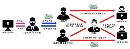 승부조작의 핵심엔 ‘브로커’가 있다. 게이머가 자생적으로 불법도박을 찾아 실행에 옮기는 경우는 없다. 1, 2차로 연계되는 브로커 중에서도 결정적 역할을 하는 허브라인에는 ‘형·동생’ 내지는 ‘선·후배’, ‘스승·제자’와 같은 특유의 관계성이 있다.