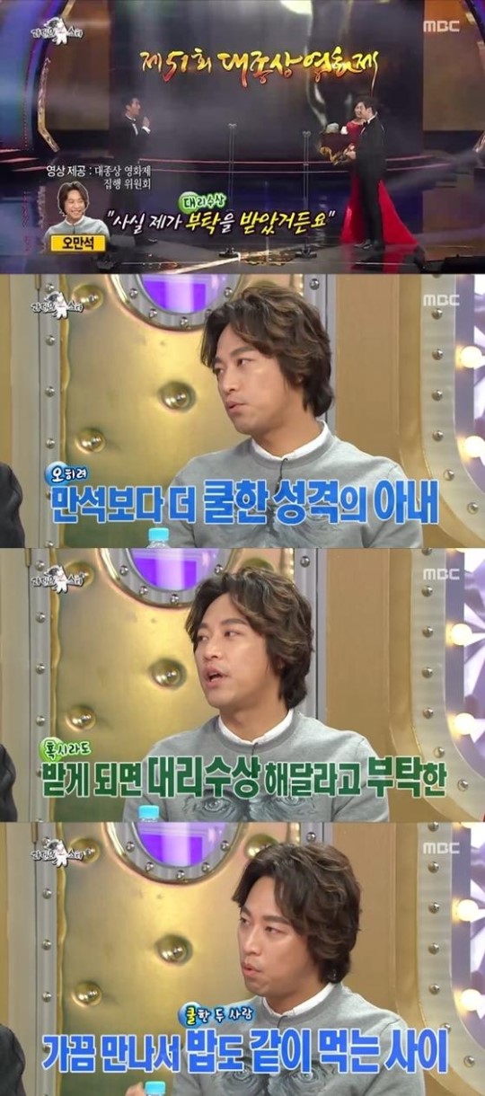 MC 김국진은 “제51회 대종상에서 전처 대리 수상을 했다”고 운을 뗐다. MC들은 “할리우드에서가 가능한 일”이라고 놀라워 했다.
