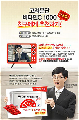 고려은단은 새 CF 공개에 맞춰 ‘고려은단 비타민C 1000’의 새 CF를 SNS 등을 통해 친구들에게 공유하고 스크랩한 URL을 덧글로 남기면 선물을 증정하는 이벤트를 이달 말일까지 진행한다.