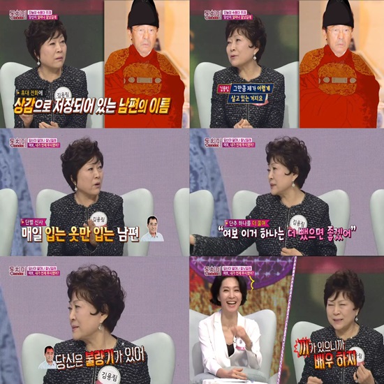 김용림은 “하루는 남편과 함께 외출할 일이 있어 집을 나서는데, 매일 똑같은 남편의 옷이 신경 쓰였다. 남편은 옷이 정말 많은데, 늘 똑같은 옷만 입는 단벌신사다. 그래서 남편이 기분 나쁘지 않게 ‘여보 그래도 배우인데 양복에 행커치프 하나 해요’라고 말을 했는데, ‘배우는 사람 아니야?’라고 버럭 화를 냈다. 또 하루는 더운 여름날 목까지 셔츠단추를 채운 남편이 답답해 보여 단추를 두 개 풀어줬는데, 갑자기 ‘당신은 불량기가 있어’라고 말했다.”면서 “그 끼로 내가 배우를 하고 있다.”고 덧붙여 스튜디오를 폭소케 만들었습니다.