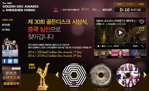 11일 골든디스크 사무국은 “중국 선전(심천)에서 20~21일 열릴 예정이던 제30회 골든디스크 시상식을 같은 날 장소를 바꿔 한국에서 개최하는 것으로 최종 변경됐다”고 밝혔다.