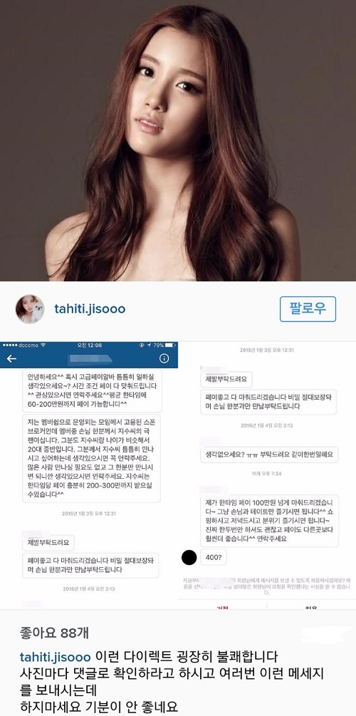 이와 관련 지수의 소속사 드림 스타엔터테인먼트는 스폰서 제안 글에 강력히 대응하겠다는 방침인 것으로 알려졌다. afero@kukimedia.co.kr 페이스북 fb.com/hyeonseob.kim.56