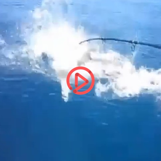 난데없이 나타난 상어 한 마리에 일격을 당하고만 참치, 참치를 물고는 요동치는 상어의 힘에서 아찔함이 느껴지네요. [출처=유튜브]