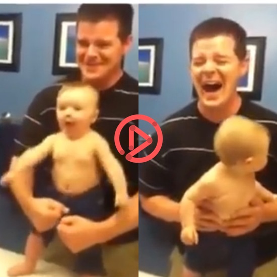 얼른 자라서 아빠처럼 힘 센 사나이가 되고 싶은 아기의 열망이 오롯이 느껴지는 사랑스러운 모습입니다. [출처=유튜브]